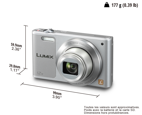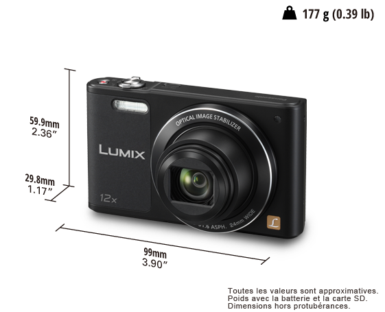 Le DMC-SZ10 est équipé d'un objectif ultra grand angle de 24 mm avec zoom optique 12x puissant (équivalent caméra 35 mm : 24-288 mm) pour profiter de sa grande polyvalence, malgré la finesse et l'élégance de l'appareil.