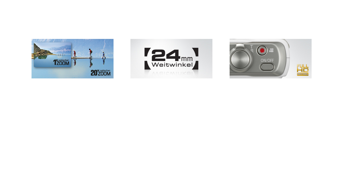 Des fonctions créatives comme le mode miniature, HDR ou le « panorama créatif » (Creative Panorama) rendent l'appareil extrêmement polyvalent. Toutes les fonctions se commandes simplement sur l'écran tactile LCD de 7.5 cm et qui permet également de prendre des photos et de les lire par un fonctionnement rapide et confortable par écran tactile.