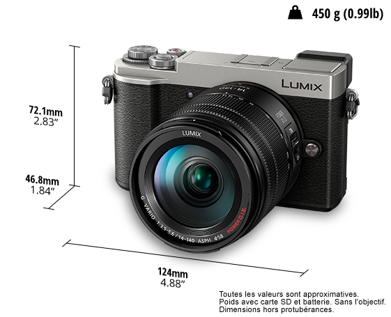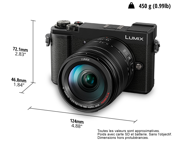 Le GX9H combine la qualité d'image incroyable avec un design compact impressionnant, y compris un viseur inclinable pour libérer votre créativité, et doté d'un capteur de 20 mégapixels + pas de filtre passe-bas, avec une double stabilisation d'image pour garantir une qualité d'image incroyable.
