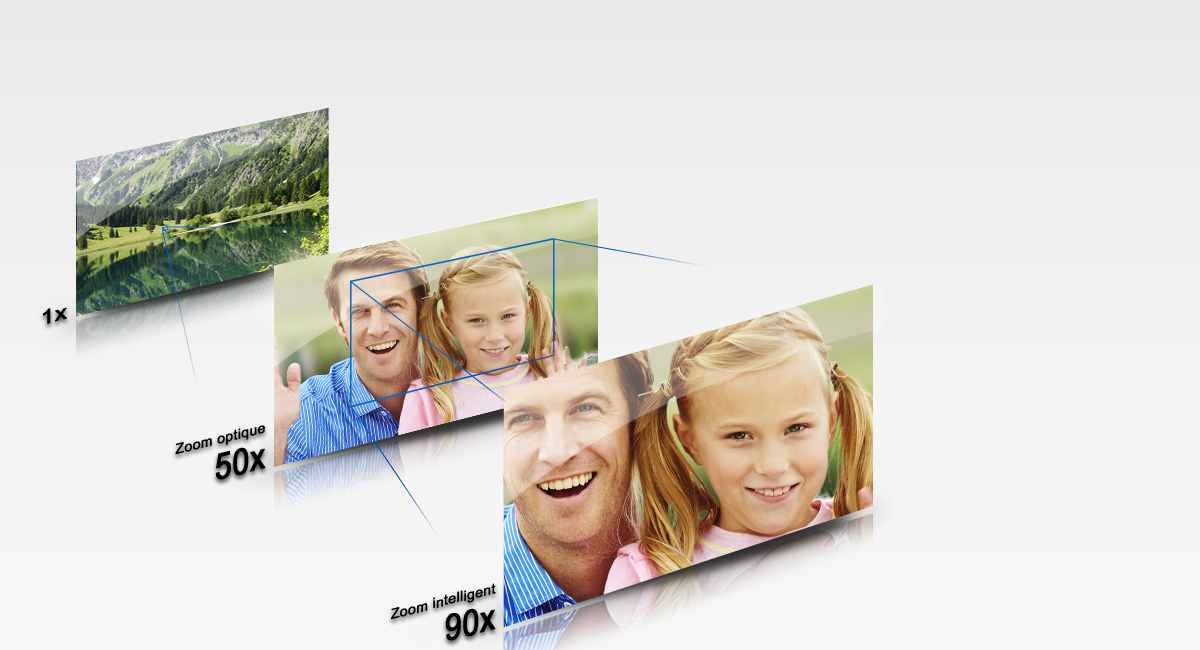 Les nouveaux modèles Twin Camera et Twin Camera sans fil offrent un effet de double caméra, qui permet de filmer une image dans l'image. Le zoom intelligent 90x vous garantit des images d'une qualité remarquable. La fonction de mise au point automatique est combinée à la détection des tremblements de la main sur 5 axes.
