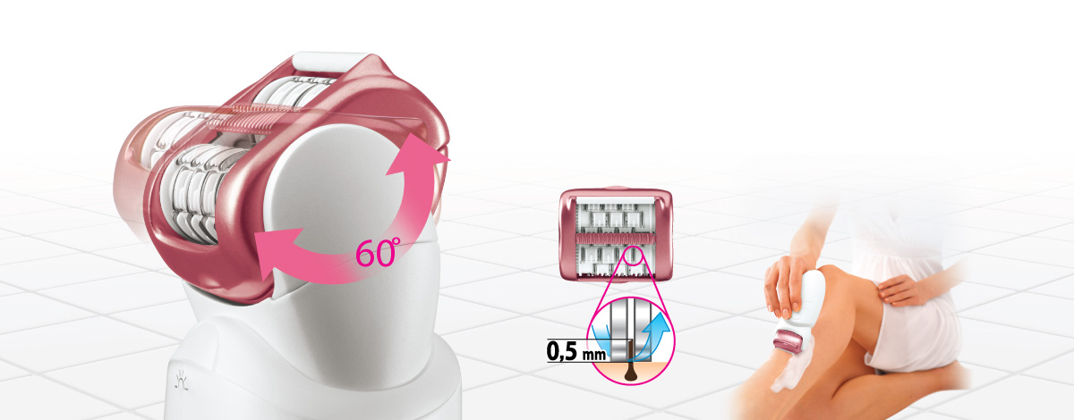 Les deux rangées de disques accrochent le poil efficacement pour une épilation rapide. Les plaques s'alignent uniformément afin de piéger les poils, même les plus courts, et de les arracher à la racine.