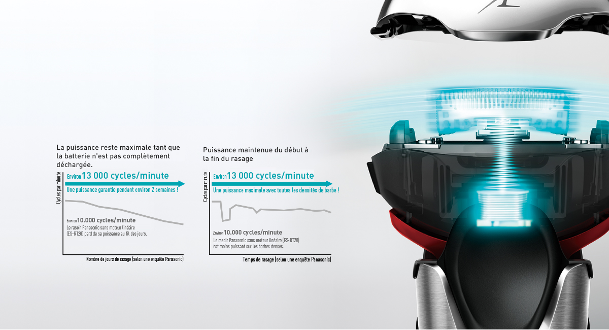 Assurant un rasage net et en douceur, le moteur linéaire à 13 000 cycles par minute conçu par Panasonic garantit une puissance maximale et un rasage de près, même sur les barbes les plus denses.