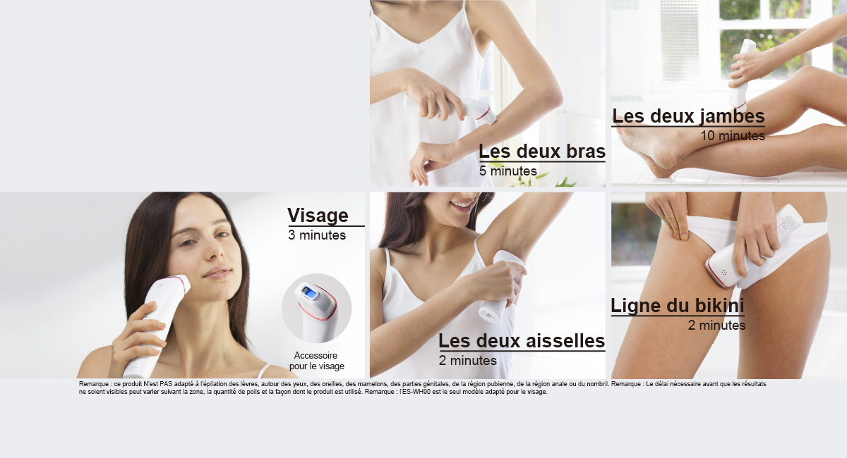 Éliminez vos poils indésirables grâce au système d'épilation à la lumière pulsée Panasonic.