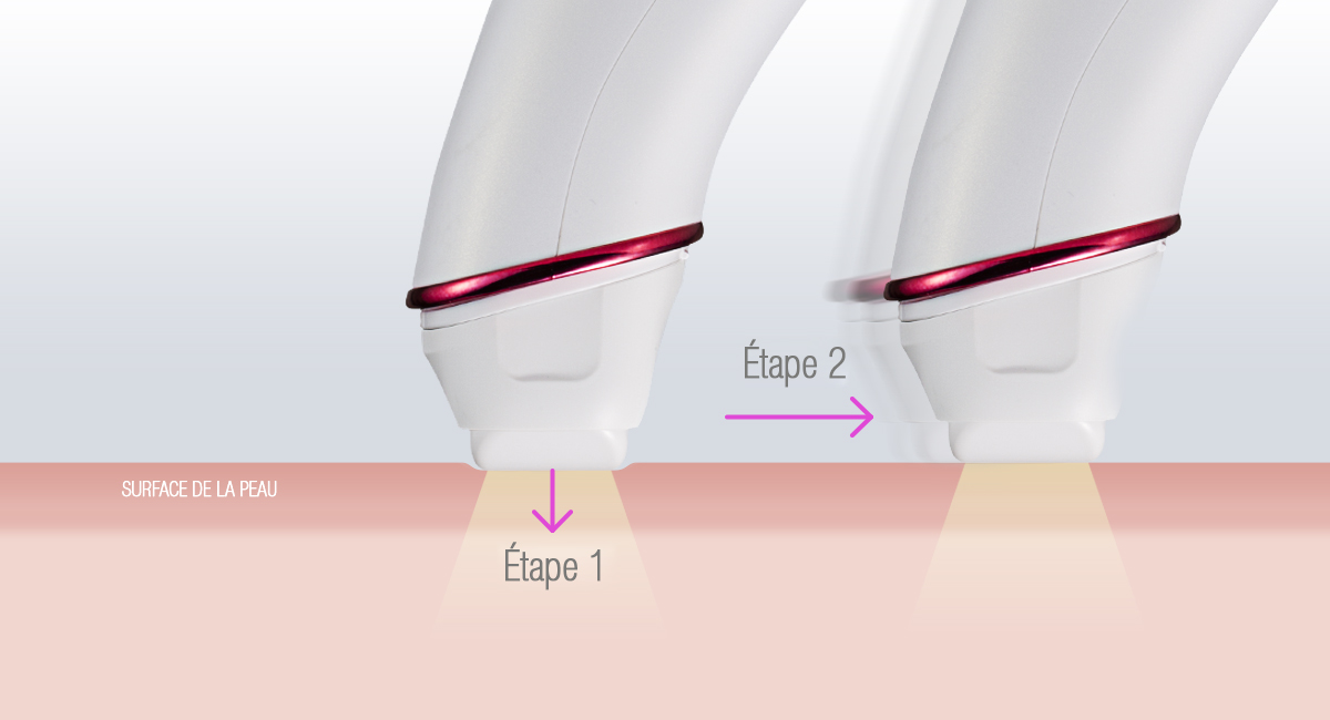 Pour flasher la peau, appuyez simplement la tête de l'épilateur sur la peau et faites-le glisser. Un flash est émis automatiquement toutes les trois secondes.