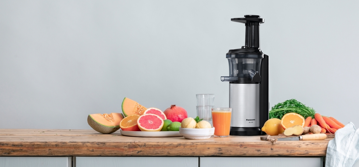 La nouvelle centrifugeuse basse vitesse de Panasonic est un pur délice à utiliser : à la fois compacte, silencieuse et facile à manipuler et à nettoyer. Toute la famille peut se régaler de desserts glacés et profiter des bienfaits d'un bon jus de fruits frais.