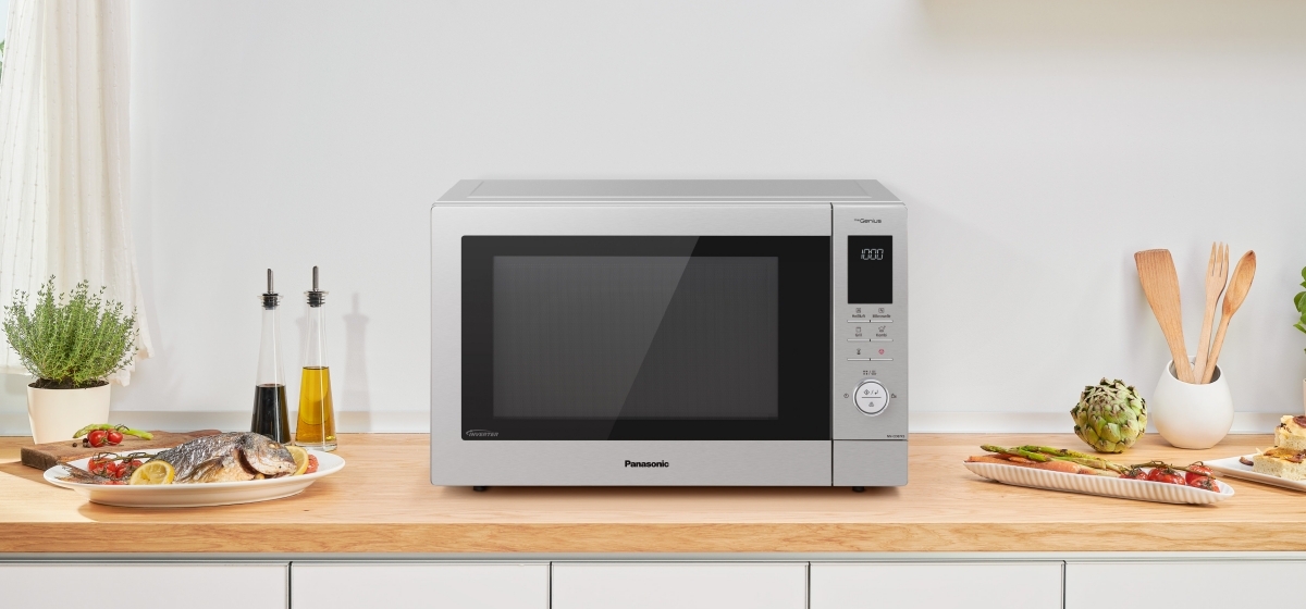 Four à micro-ondes combiné de 34 l avec onduleur et économie d'espace, dont le design élégant en acier inoxydable a été récompensé. La fonction de réchauffage par simple pression et les options saines de menu junior contribuent à la préparation facile de repas sains pour toute la famille.