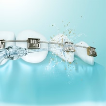 Si vous portez un appareil dentaire fixe, un retainer ou un bridge dentaire, vous allez adorer la combinaison entre l'hydropulseur dentaire nomade et la buse orthodontique disponible en option WEW0984W303 (CHF 16.90 PVC). Alors que la brosse en forme de cône nettoie les brackets et les fils, le jet d’eau élimine directement la plaque dentaire et les restes de nourriture dissous.