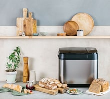 Arborant un nouveau design, la nouvelle génération 2021 de machines à pain devient une pièce maîtresse esthétique dans la cuisine. L’appareil mesure408 x 362 x 252 mm (L x H x P) et occupe donc davantage le plan de travail dans sa largeur qu’en profondeur. En raison de son format plus horizontal, le couvercle est nettement plus court que sur les versions au design vertical. Lorsque le couvercle est ouvert, l'appareil ne mesure que 55 cm de haut environ et peut être ouvert complètement dans la plupart des cuisines, même sous des meubles hauts. Les boulangers amateurs pourront ainsi utiliser le moule à pain sans avoir à déplacer l’appareil du plan de travail. Cela vient encore accentuer le plaisir du fait maison.