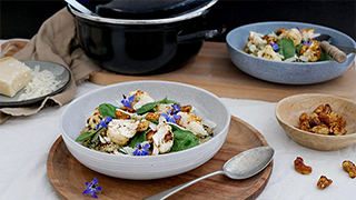 Prostorná mikrovlnná trouba s kapacitou 31 litrů a s 1100W grilem Quartz na vaření pro celou rodinu.