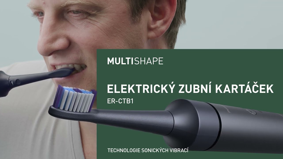 Součástí vaší každodenní osobní péče jsou nejen chloupky na obličeji nebo na těle, ale také zuby. Proto si můžete k hlavní jednotce MULTISHAPE (rukojeti) zakoupit nástavec ER-CTB1 s hlavicí elektrického zubního kartáčku. Sada zubních kartáčků obsahuje konektor a dva různé kartáčky: Multi-fit Brush a Extra-fine Brush – oba zajišťují hloubkové čištění pomocí sonické vibrační technologie.