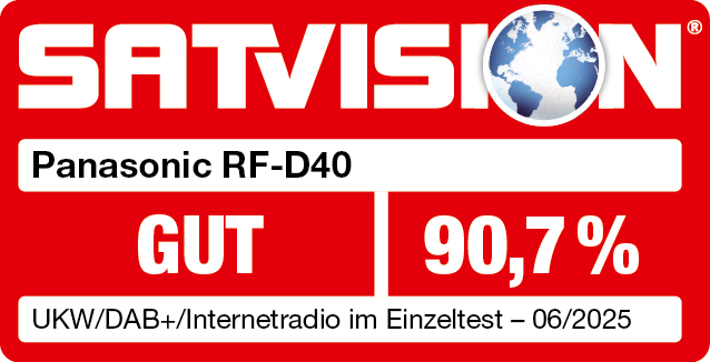 "Das Panasonic RF-D40 ist ein stilvolles Stereo-Radio, das durch seine kompakte Bauweise und eine vielseitige Ausstattung überzeugt. .... Musikliebhaber, die auf der Suche nach einem funktionalen und ansprechend designten Internet-Radio für die Küche, dem Hobby-Raum, das Büro, Gäste- oder Schlafzimmer sind, das sowohl klassische Radio- als auch moderne Übertragungsformate abdeckt, sind hier an der richtigen Adresse."
