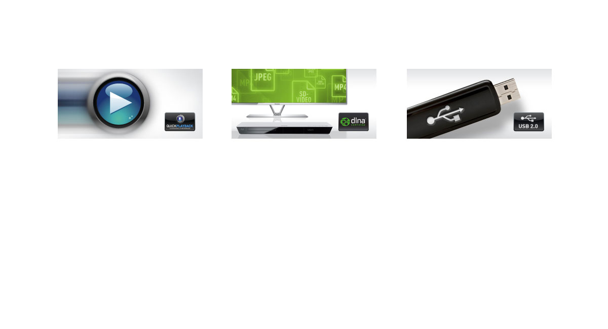DLNA stellt sicher, dass die zahlreichen Geräte und Dateiformate, die sich bei Ihnen tummeln, reibungslos zusammenarbeiten. Neben JPEG, MP3 und WM4 kommen auch Videoformate vom PC im Arbeitszimmer in brillanter Qualität im Wohnzimmer kabellos groß raus.