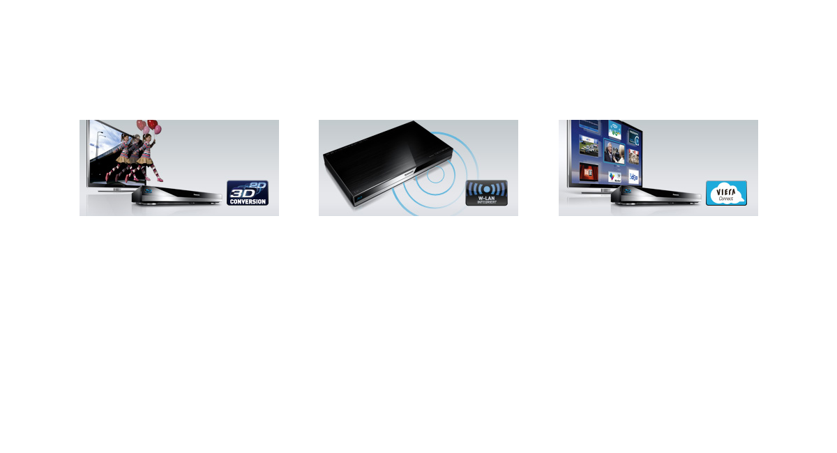 Wenn Ihr AV-Receiver zwar über einen HDMI-Eingang verfügt, aber nicht 3D-fähig ist, verbinden sie den DMP-BDT500 einfach direkt mit dem 3D TV. Über den zweiten HDMI-Ausgang, der im Audio-Modus für Musikwiedergaben optimiert werden kann, genießen Sie Audio in Reinkultur. Völlig ungestört vom Videosignal gibt der DMP-BDT500 so z.B. echten Pure Audio Sound aus. Aber auch analoge Audio-Komponenten holt er über seinen vergoldeten 7.1 Analogausgang mit ins Boot, ideal für ältere AV-Receiver ohne HDMI-Anschluss. Dank integriertem W-LAN wird der DLNA-zertifizierte BDT500 zum Teil des Heimnetzwerkes und spielt Bilder, Videos und WAV-, FLAC- und MP3-Audiodateien von angeschlossenen Netzwerkspeichern ab. Über VIERA Connect bringt der DMP-BDT500 ein rasant wachsendes Angebot an Onlinediensten auf den Bildschirm - erstmals auch mit sehenswertem 3D Effekt (ausgenommen sind Skype Videochats). Auf dem VIERA Connect Marketplace gibt es ständig neue Apps aus den Bereichen Musik, Social Networking, Lifestyle, Sport und vielem mehr. Gesurft wird jetzt auch auf der Fernbedienung. Die Schaltzentrale mit neuem Touchpad macht die Bedienung noch komfortabler. Sie können Ihren DMP-BDT500 aber auch via Smartphone steuern. Entsprechende Apps gibt es für iPhone™, BlackBerry™ und Android-Smartphones.