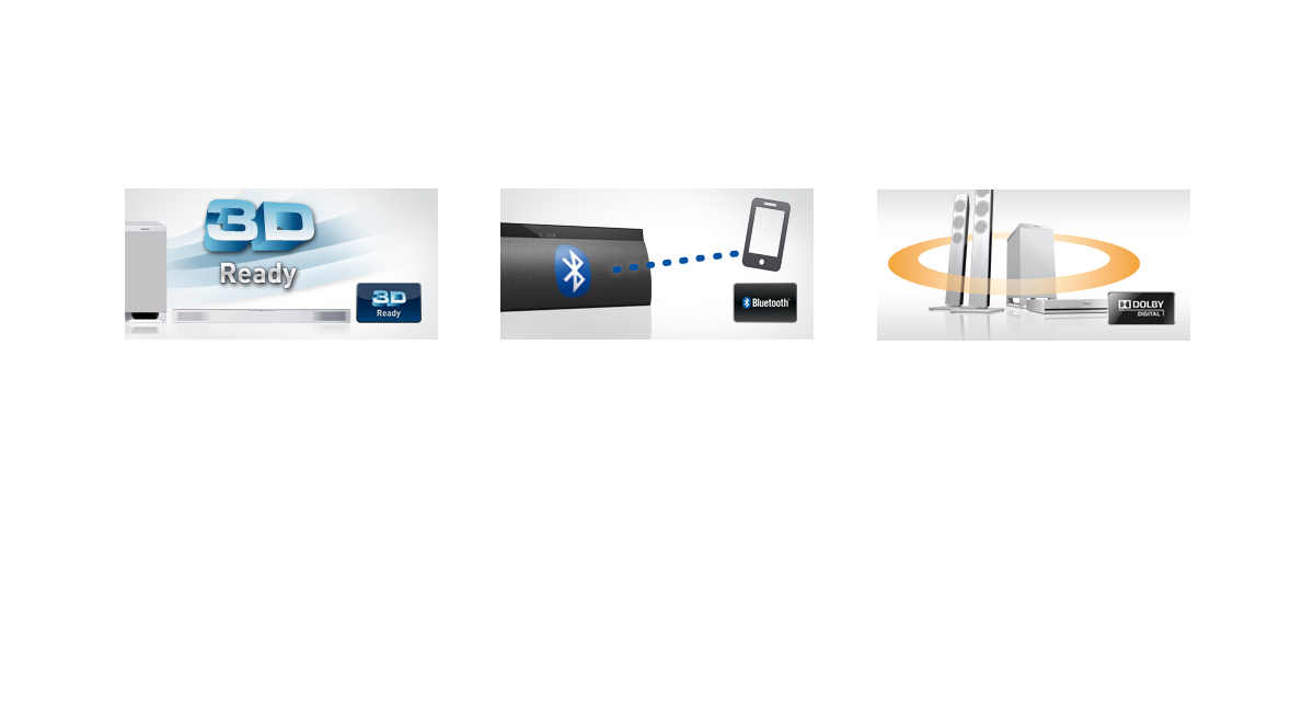 Sie suchen klangliche Verstärkung für Ihren 3D-fähigen Fernseher und Blu-ray Player? Dann sind die neuen Panasonic Soundbar Systemen genau die richtige Wahl. Sie sind alle 3D Ready und damit die ideale Ergänzung zu Panasonics Smart VIERA 3D Fernseher oder Blu-ray Playern.