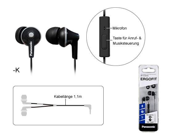 Ergonomisches In-Ear Headset für Mobiltelefone inklusive Controller mit Mikrofon und Taste für die Anruf- und Musiksteuerung. Die drei mitgelieferten farbigen Silikon-Pass-Stücke (S/M/L) sorgen für den perfekten Sitz im Ohr.