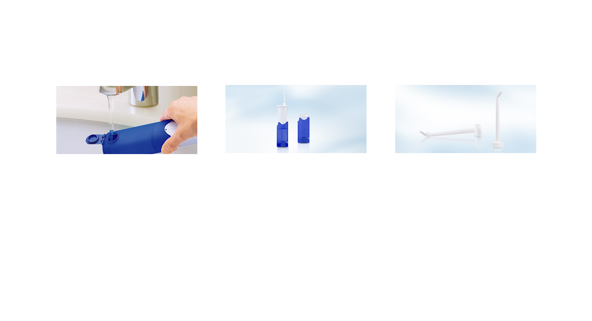 Die EW1270 funktioniert kinderleicht und ist dabei klein und platzsparend: Einfach den Handgriff mit integriertem Wassertank auseinanderziehen, Wasser einfüllen und los geht es. Sie entfernt mit fühlbar gründlichem Wasserstrahl Speisereste aus den Zahnzwischenräumen und ist deshalb auch ideal für die Pflege von festen Zahnspangen und der 3. Zähne geeignet.
