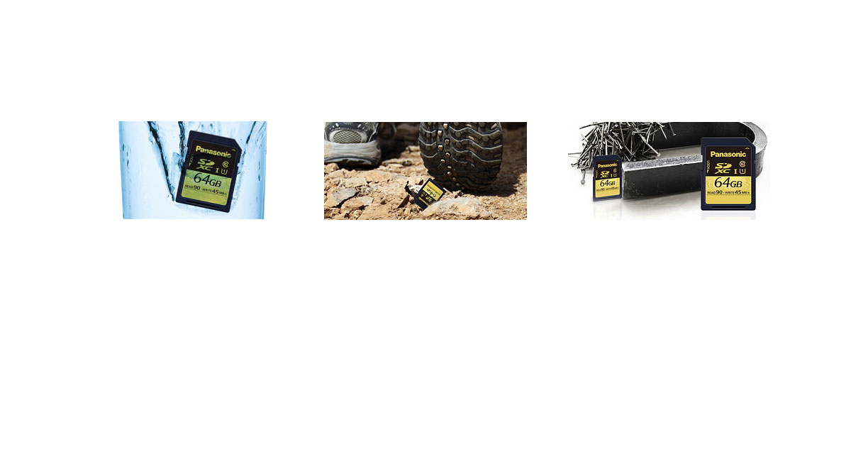 Am Strand, im Sand, Badeurlaub oder einfach das verschüttete Wasserglas zu Hause oder am Arbeitsplatz: Geschützt gegen Wasser, Staub und Sand funktionieren Panasonic SD Karten auch nach 30 Minuten in Frischwasser, bei einer Tiefe von 1 Meter.