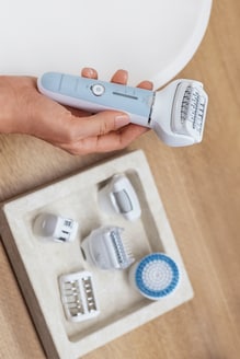 Beim 7-in-1 Modell EY90 entscheiden sich Freundinnen glatter, gepflegter Haut für das Spa Komplettpaket. Er epiliert, rasiert, trimmt und geht ebenfalls beim Bodypeeling und der Fußpflege zur Hand. Die gleiche Premium-Epilation wie das Topmodell bieten auch die sechs weiteren EY-Modelle. Hier orientiert sich das mitgelieferte Zubehör an unterschiedlichen Körperpflegevorlieben. Über einzeln erhältliche Wechselköpfe können Anwenderinnen allerdings jederzeit weitere Beauty Skills der EY-Serie für sich entdecken. Das Wechselkopf-Konzept trägt zudem zu einer langen Nutzbarkeit der EY-Epilierer bei: Anstatt das komplette Gerät zu ersetzen, wird nur der entsprechende Aufsatz ausgetauscht.
