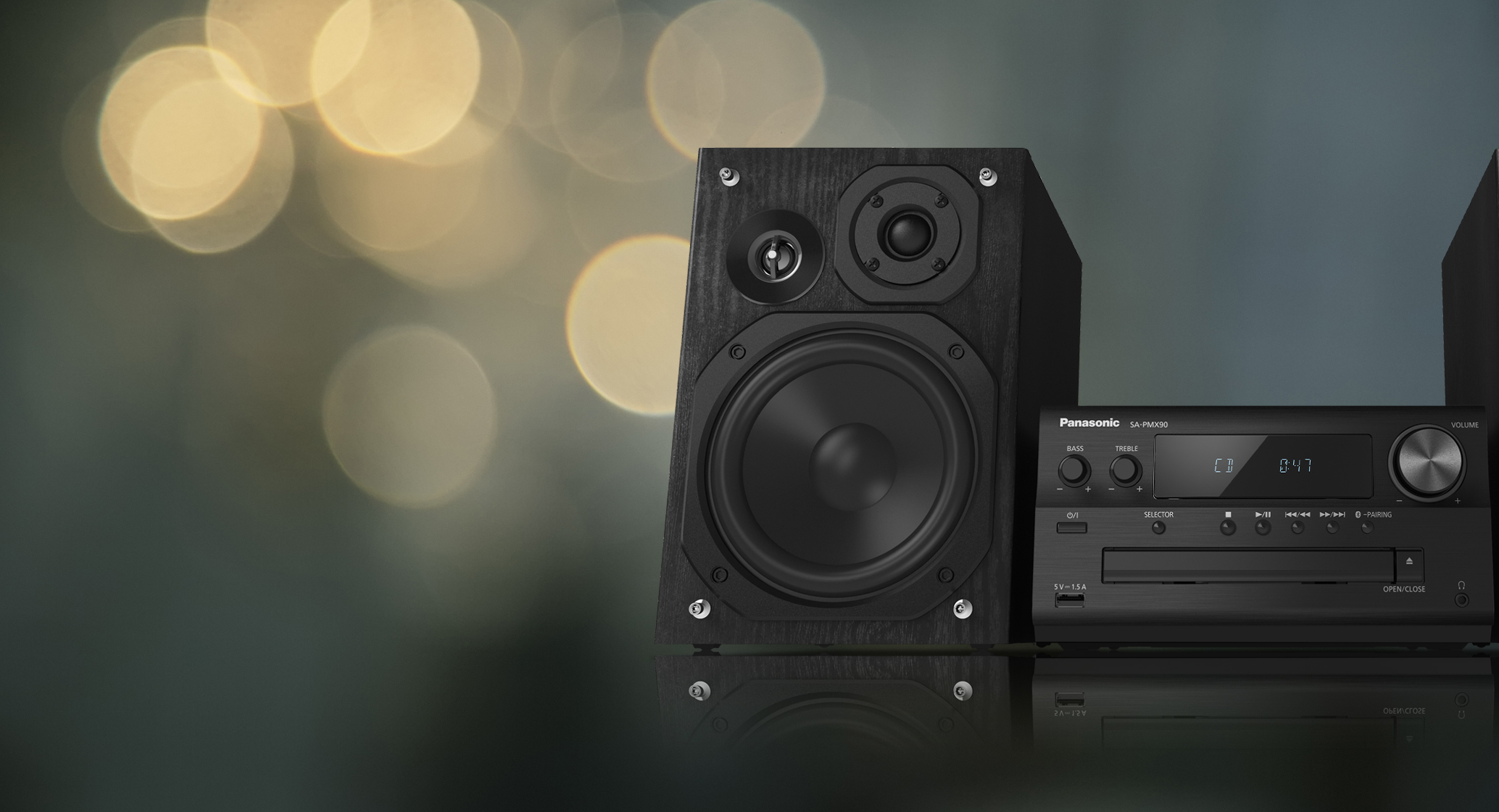 Nor are they short of features: in addition to the ultra-convenient Aux-in function, the sources include CD, DAB+*, FM, USB and Bluetooth, which makes it a doddle to listen to music wirelessly from a smartphone or tablet. As with the PMX series, installing the Panasonic Music Streaming App lets you create playlists or change the order of songs playing.