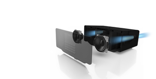 Despite its diminutive dimensions, the D70BT has been cleverly designed to produce a richly detailed sound. It boasts two 8 cm-wide full-range speakers at either side, which are shielded to suppress external noise. These are complemented by a bass reflex port at the back which enables the D70BT to reproduce strong bass sound. The result is clear, high-quality sound from a compact unit.