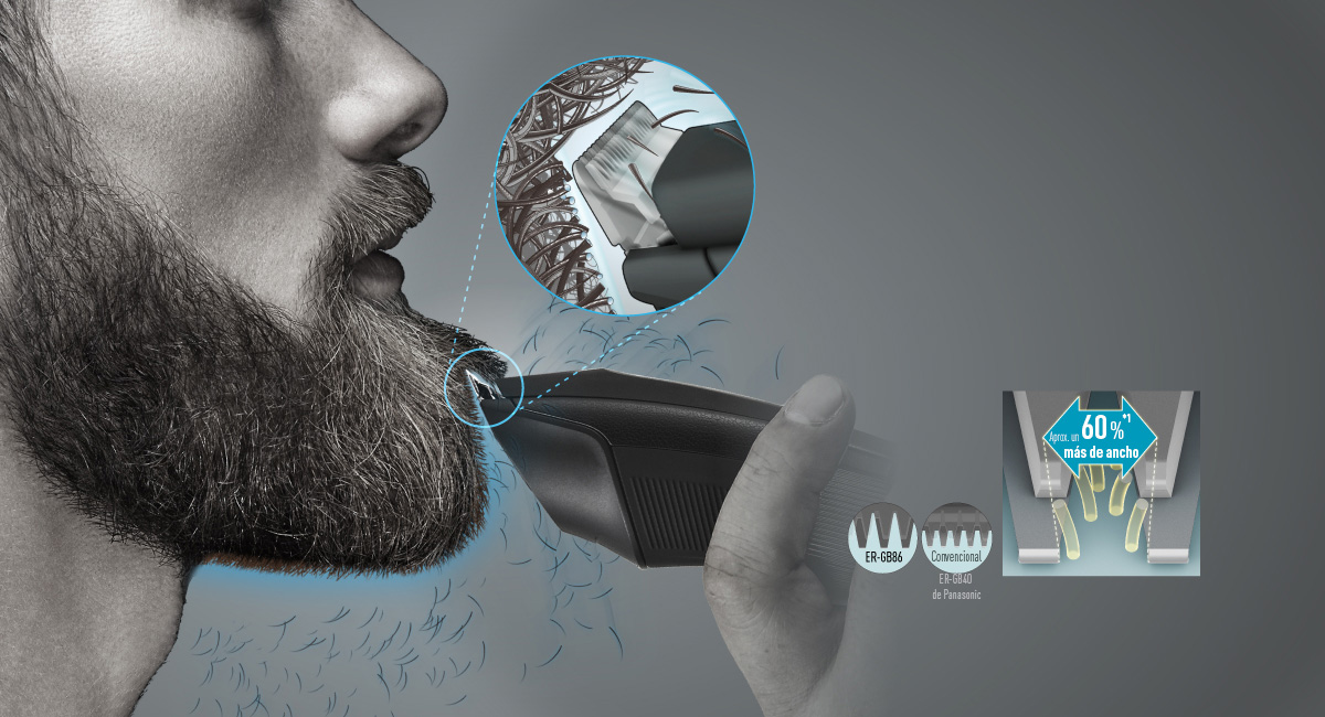 Equipada con un potente motor para el corte suave de barbas densas, incluso duras. Permite recortar cómodamente barbas largas y pobladas que sufren tirones fácilmente con las hojas convencionales.