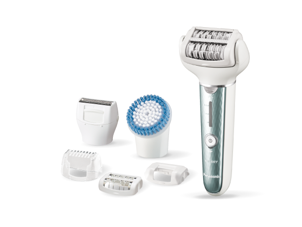 Panasonicin märkänä/kuivana käytettävän epilaattorin päätä on levennetty 30 % ja levypareissa on 60 pinsettiä. Tämä mahdollistaa nopean ja erittäin tehokkaan ihokarvojen poiston. Koko vartalon erilaiset tarpeesi voidaan täyttää kuudella eri lisäosalla.