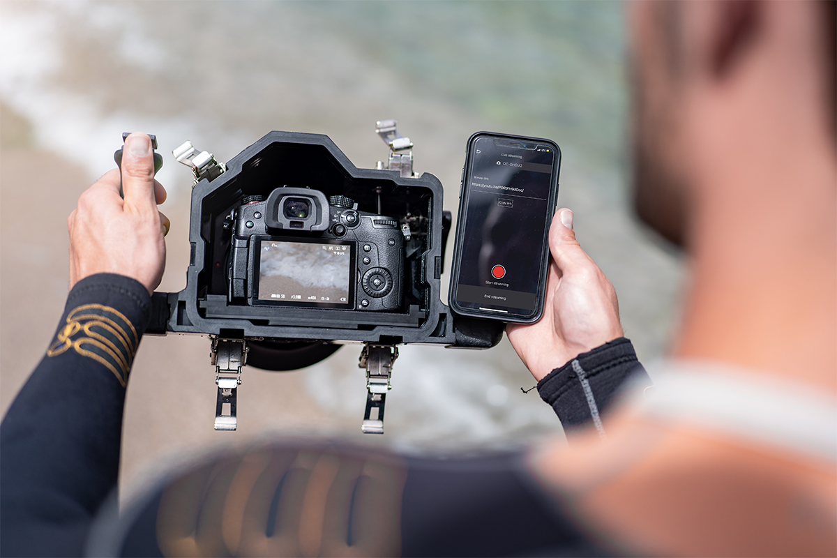 Tähän asti se on ollut teknisesti liian vaativaa. GH5M2:n ja sen sisäänrakennetun RTMP-moduulin julkaisu teki siitä lopultakin mahdollista. Kun minulla on GH5M2 ja älypuhelin, voin tehdä suoran lähetyksen missä tahansa. Projektiani varten kuvittelin äärimmäisiä tilanteita, joissa harvat hoksaisivat tehdä live-lähetyksen ihan vain teknisistä syistä. Juuri siitä halusin aloittaa!” Hän keksi projektin, jossa nämä kolme elementtiä ovat mukana: ilma, maa ja vesi. Hän halusi kuvata ja tehdä live-lähetystä ajaessaan alamäkeen maastopyörällä, kuumailmapallolennon aikana ja veden alla.