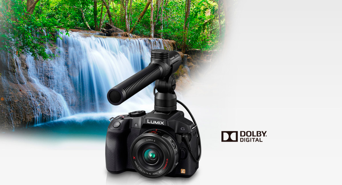 Le son haute qualité peut être enregistré en Dolby® Digital. Une fonction d'élimination du bruit du vent est également disponible pour bloquer la plupart des bruits de fond provoqués par le vent. Outre le microphone stéréo intégré, le DMC-G6 est équipé d'un terminal 3,5 mm pour que le microphone externe autorise un enregistrement sonore de qualité. Le micro externe DMW-MS2 (facultatif) élimine le bruit du moteur de la caméra et les bruits liés à la manipulation de la caméra pour capturer le son que vous recherchez. La commutation microphone stéréo/canon s'effectue via le menu.