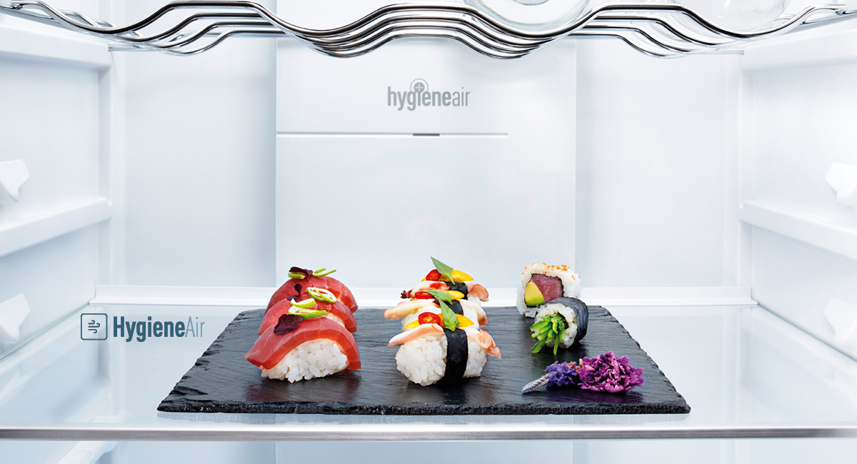 Le système HygieneAir est une technologie antibactérienne intégrée au réfrigérateur qui offre un taux de désinfection de 99,99 %.