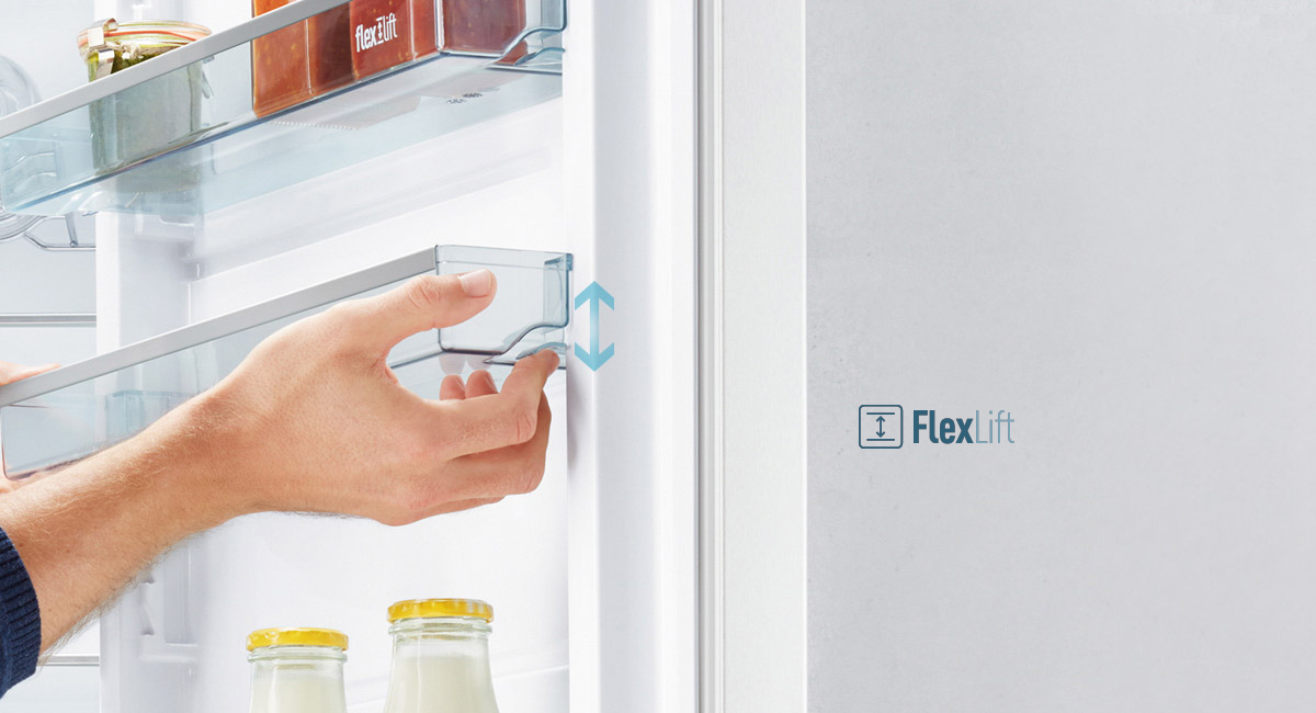 Les balconnets de porte facilement ajustables FlexLift peuvent supporter jusqu'à 5 kg.