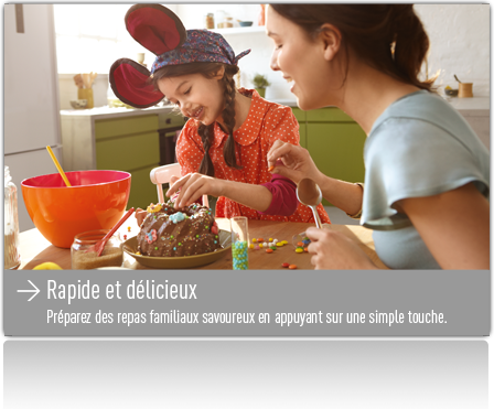 Oubliez les modes de cuisson compliqués : il vous suffit de sélectionner le type d’aliment et d’appuyer sur la touche start. La cuisson intuitive s’occupe du reste : la puissance et le temps de cuisson, ainsi que la combinaison des modes. Rien de plus simple !