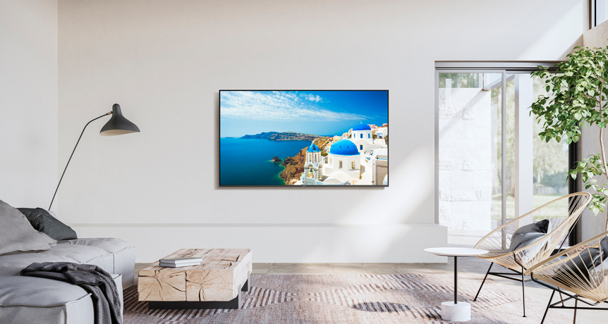 Les téléviseurs Panasonic peuvent également être installés au mur. En le fixant au mur, il rend la pièce plus spacieuse et crée l'illusion que l'image flotte dans l'espace.