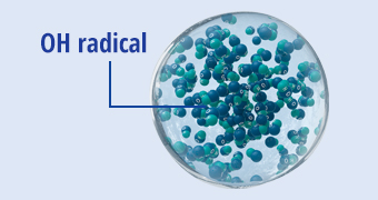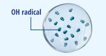 従来は放射線状に分散して放電していたものを、一点に集中して放電することで、広いプラズマ領域を形成。ナノイー(帯電微粒子水)の10倍※²のOHラジカルを生成します。 | |