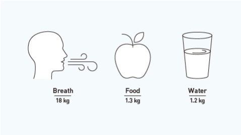 1. Each of us breathes in 18 kg of air a day.