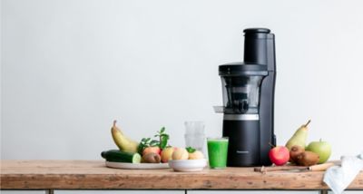 Uživajte u omiljenom soku još brže. Spori sokovnik MJ-L700 prihvaća cjelovite komade voća i nema više potrebe za dugotrajnim sjeckanjem. Sporo cijedi i pažljivo izvlači sve hranjive sastojke i okus iz sastojaka. Zamislite zdrav hladno cijeđeni sok ili smrznute deserte kod kuće svaki dan. Zatim to doživite s uređajem MJ-L700.