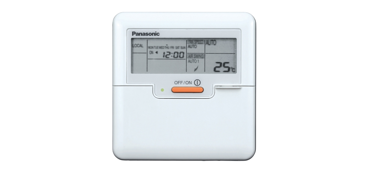 Remote berkabel untuk AC package single split non-inverter. Memungkinkan pengoperasian AC dasar, fungsi hemat energi, dan kontrol pengatur waktu.