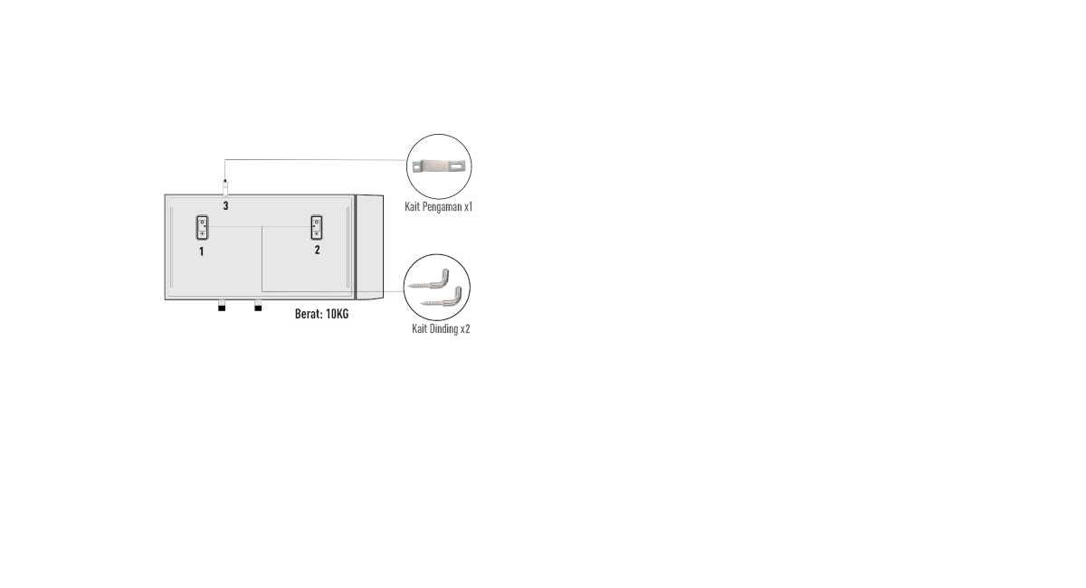 • Penyangga maksimal mengurangi risiko terlepas dari dinding.