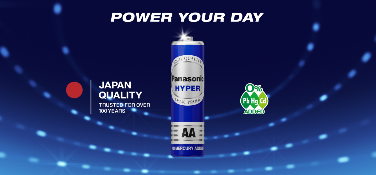 Zinc-Carbon mangan Panasonic menyediakan sumber daya ekonomis untuk perangkat dengan konsumsi daya rendah.