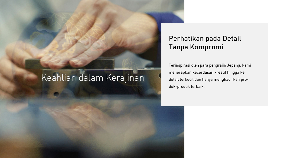 Kepedulian terhadap sesama. Perhatian pada detail. Meminimalkan limbah. Rasa hormat terhadap alam. Akar budaya Jepang kami membentuk jati diri kami.