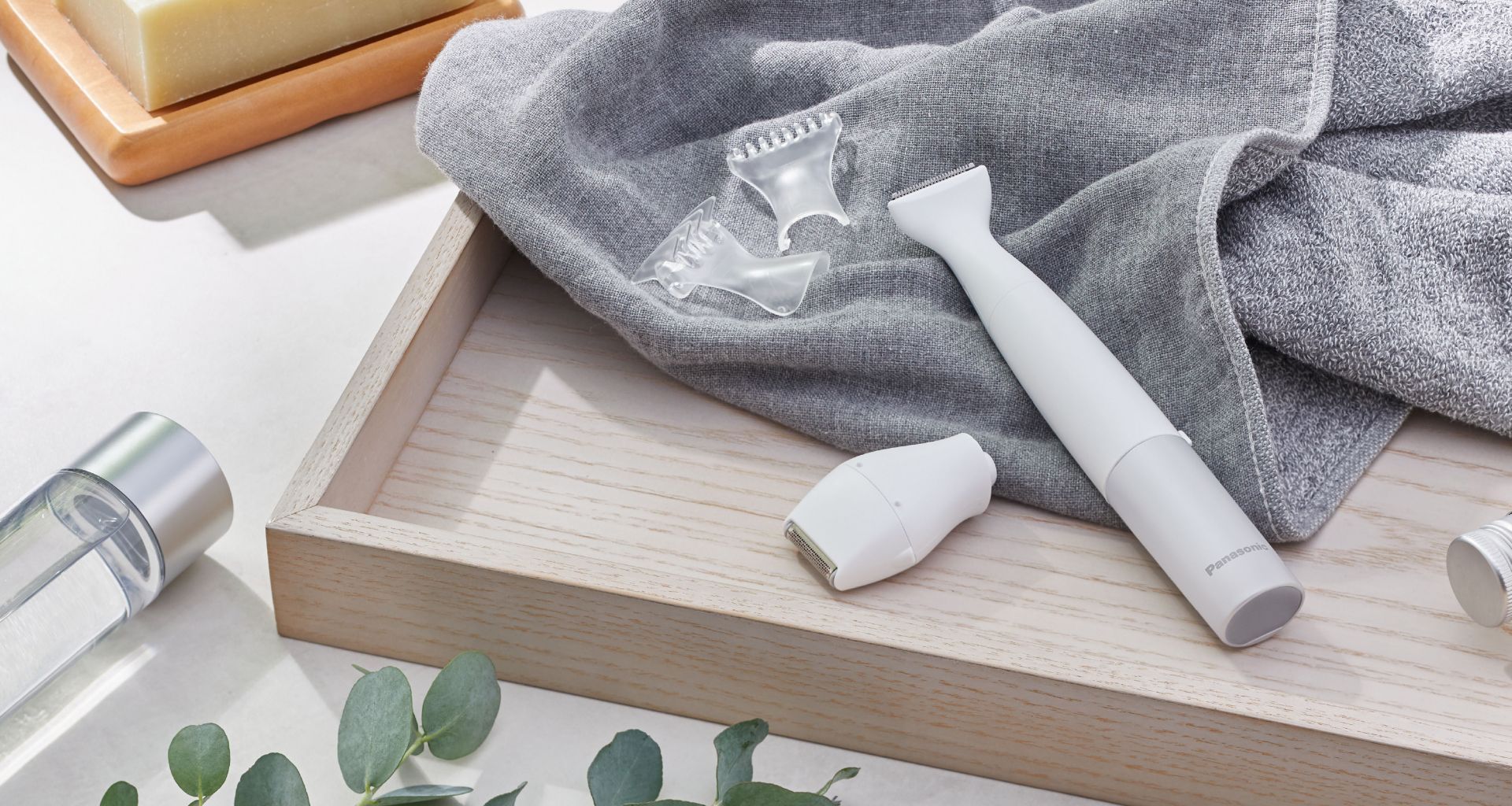 The trimmer and the shaver cut thick hair in the bikini area gently and speedily for a smooth finish. What's more, both the body and the head are waterproof.