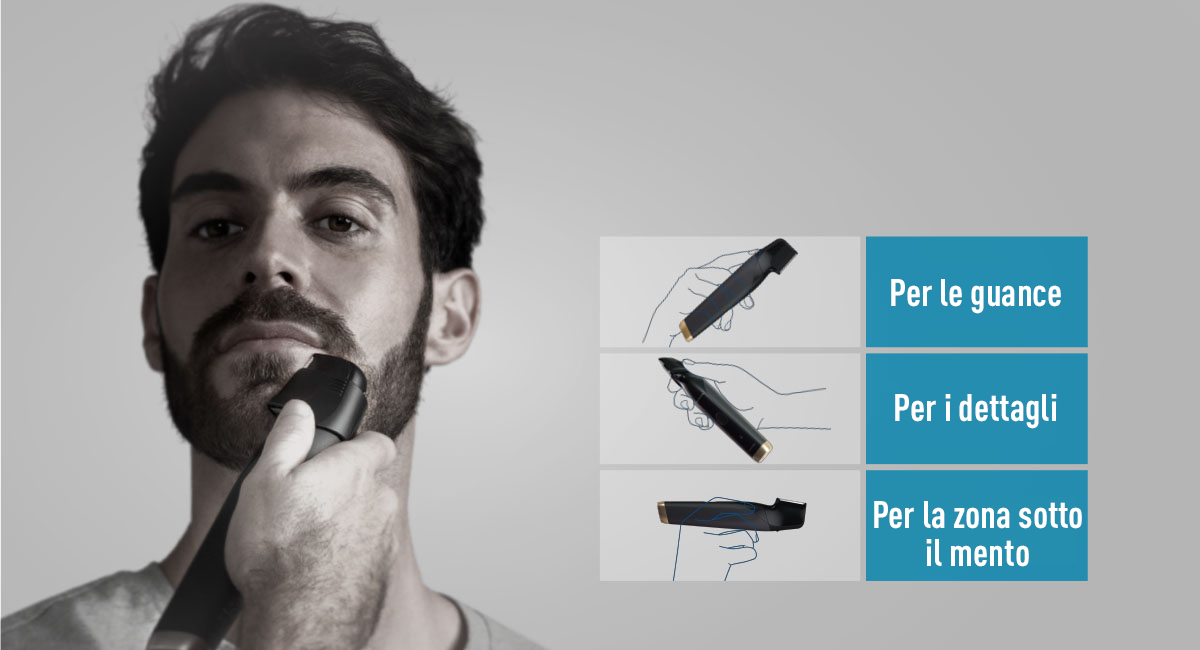 i-shaper ER-GD61: una rivoluzione nello styling della barba. Ispirata al rasoio del barbiere, l'esclusiva posizione della lama ti permette di vedere il lavoro come mai prima d'ora. Dispone di pettine regolabile per rifinire da 0,5 a 10 mm e accessorio dettagli per il contorno labbra. Potrai rifinire, rifilare e modellare la barba con grande precisione e il minimo sforzo.