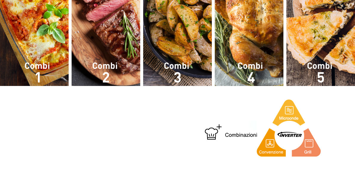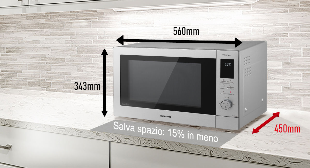 Forno a microonde combinato con tecnologia Inverter, 34 litri, a ridotto ingombro con design slim in acciaio inox. La funzione riscaldamento con un solo pulsante e le opzioni per i menu bimbi semplificano la preparazione di pasti sani per tutta la famiglia.