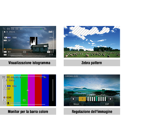 Negli obiettivi sono integrati filtri ND per eliminare la luce incidente. È possibile selezionare i filtri (1/4, 1/16, 1/64 o OFF) in base all'ambiente di ripresa. Questo è ad esempio utile quando si desidera filmare con una bassa velocità dell'otturatore con la luce del giorno.