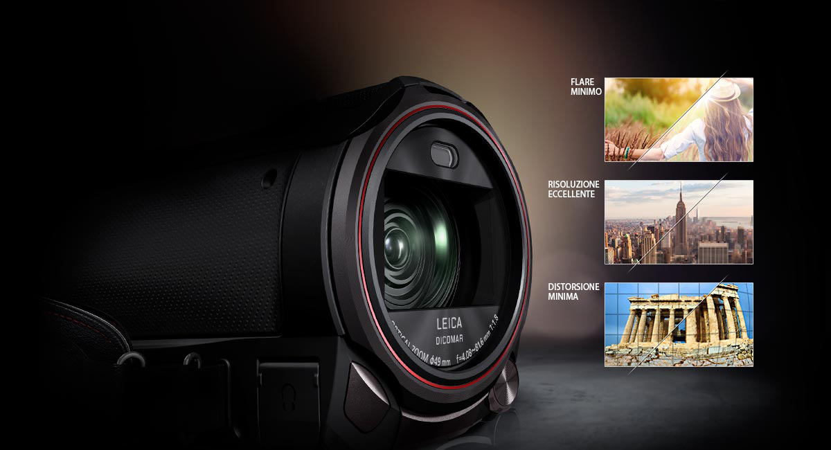 L'obiettivo Leica Dicomar è progettato per attenuare la distorsione e ridurre al minimo ombre e bagliori. Garantisce una risoluzione eccellente anche in caso di ingrandimento delle riprese, per scatti sempre nitidi e accurati.
