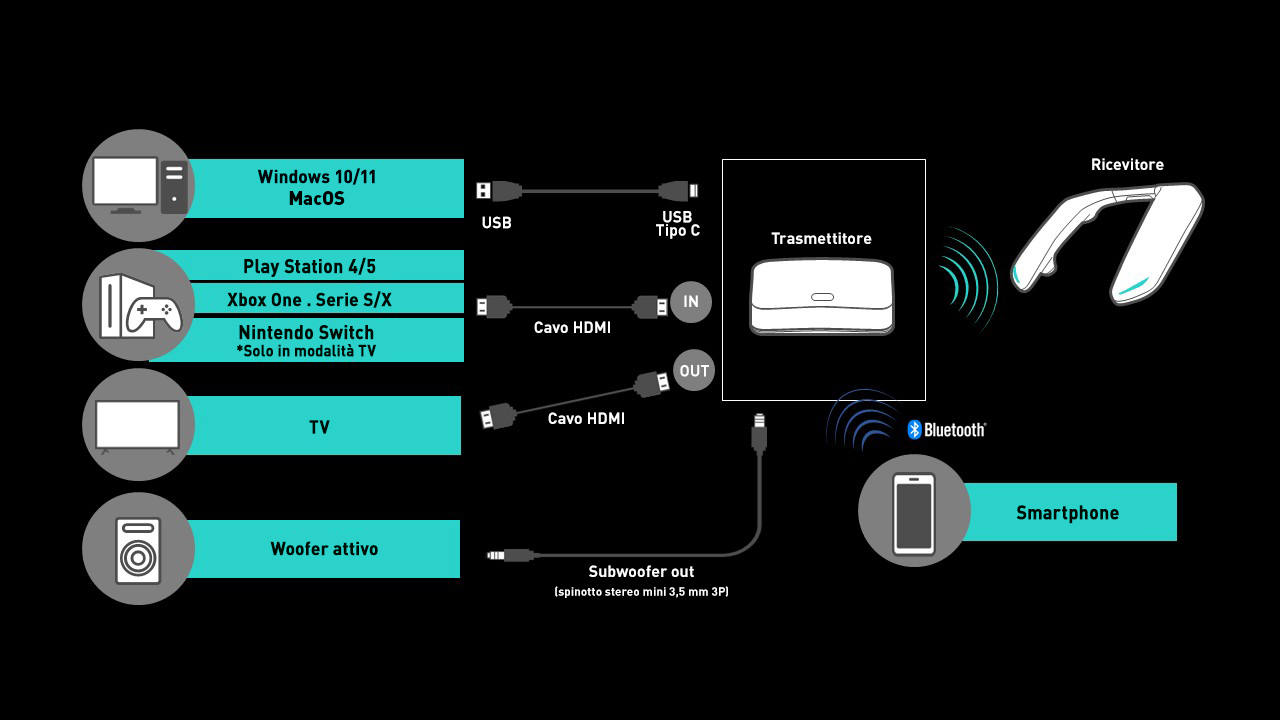 (interruttore tattile: accoppiamento wireless / accoppiamento Bluetooth / selezione ingresso con un solo interruttore)