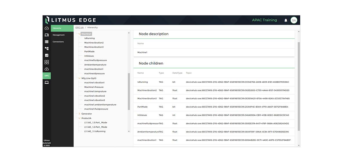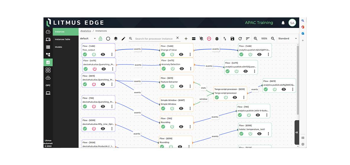 正規化され文脈化された貴重なデータを機械学習に供給し、エッジで新しいモデルを実行してフィードバックループを完成させます。「Litmus」によるデジタル・ツインでは、アセット・モデリングとインスタンスが同じプラットフォーム上で動作し、効率化します。