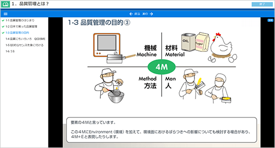 - 初めて品質管理を学ばれる方でも、品質管理の基本的考え方がいつでもどこでも効率的に勉強できます。