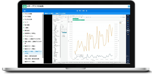 演習課題の模範操作を講師が動画上で実演します。講師の手順通りにTableau Desktopを操作することで理解が深まります。
