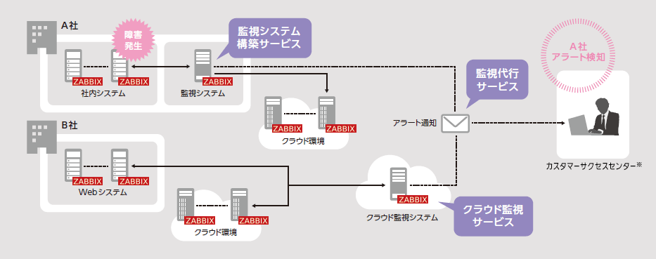 クラウド上にある監視システムからお客様システムを監視するサービスです。