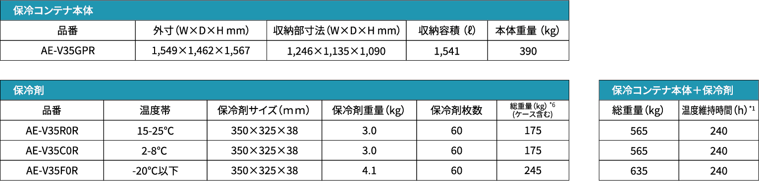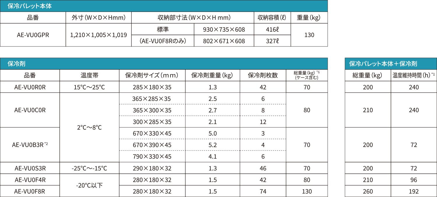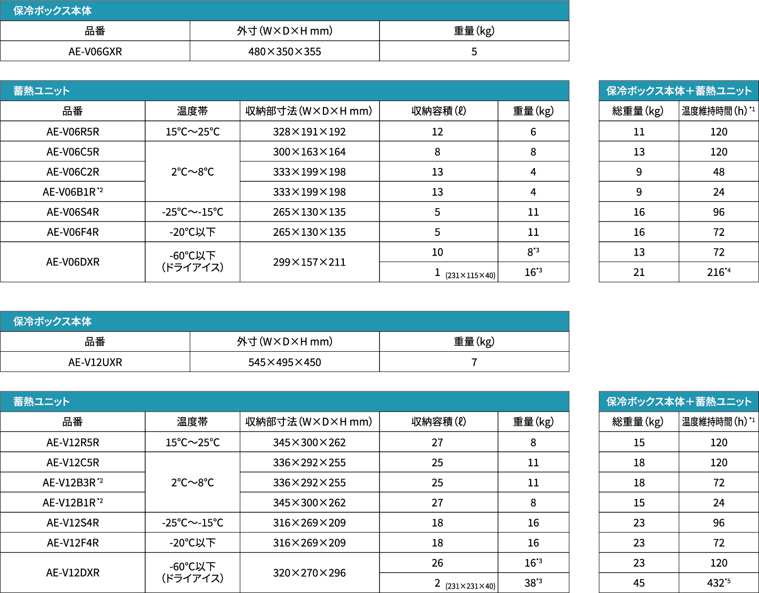 *1 温度維持時間は、15℃~25℃帯は外気温5℃、その他の温度帯は外気温30℃にて収納箱内の温度を計測した当社測定結果です。使用環境によって温度維持時間は変化します。